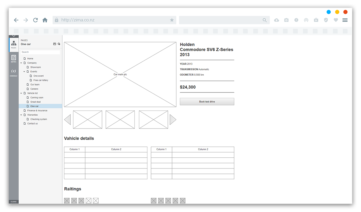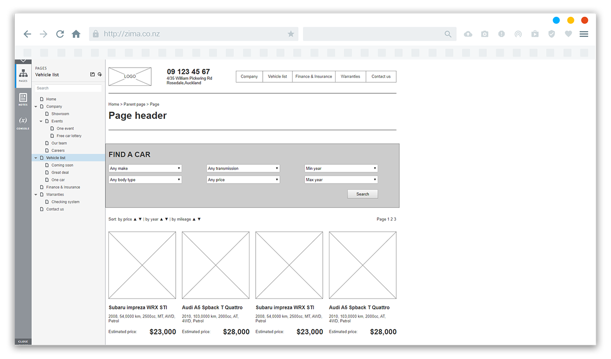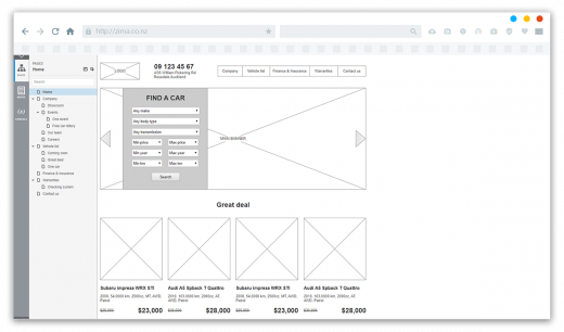 We created structure, prototype and design for main types of pages including vehicle list, car page, events etc.