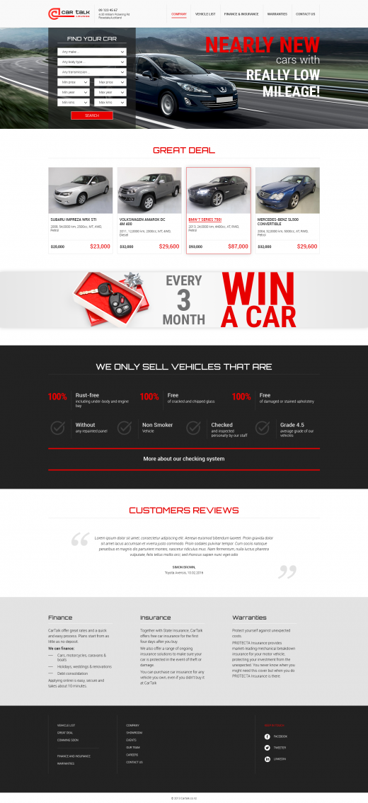Responsive Design and development for a new auto dealer and car importer "Car Talk Lounge" based in Auckland.