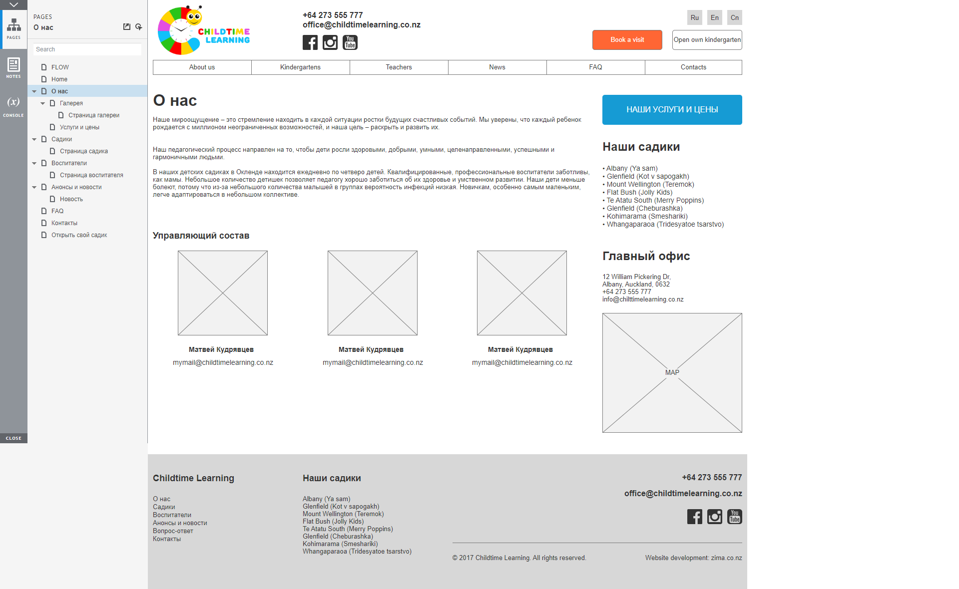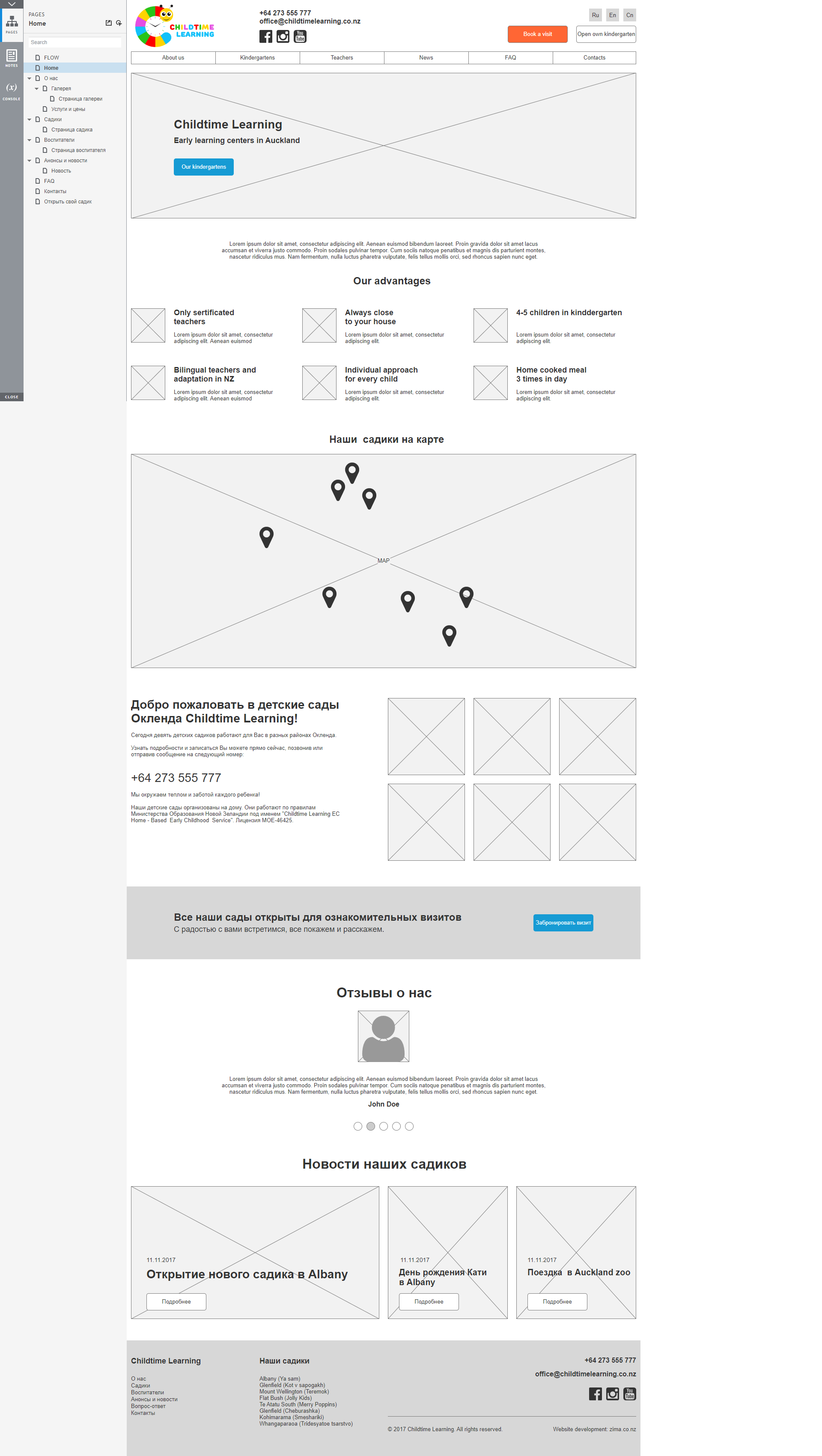 After several meetings with the customer, we designed wireframes which defined the necessary site functionality and the relationship between pages and interface elements. After that, we created a design for Childtimelearning, remembering that it will be used by adults, not children.