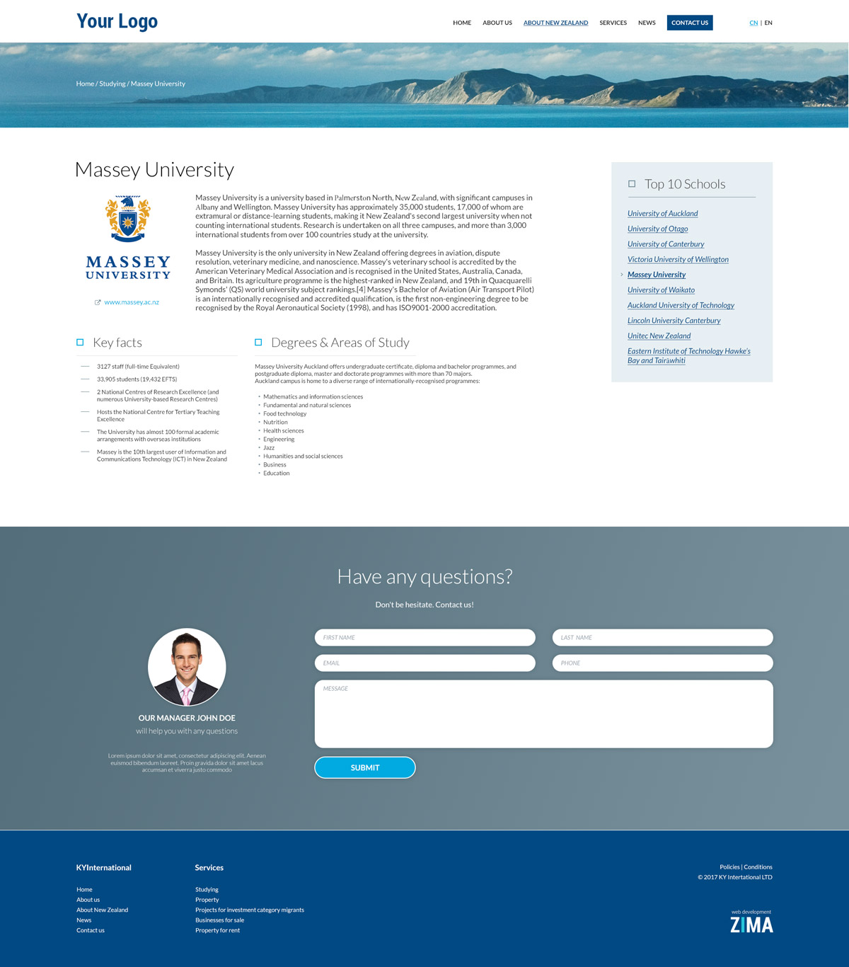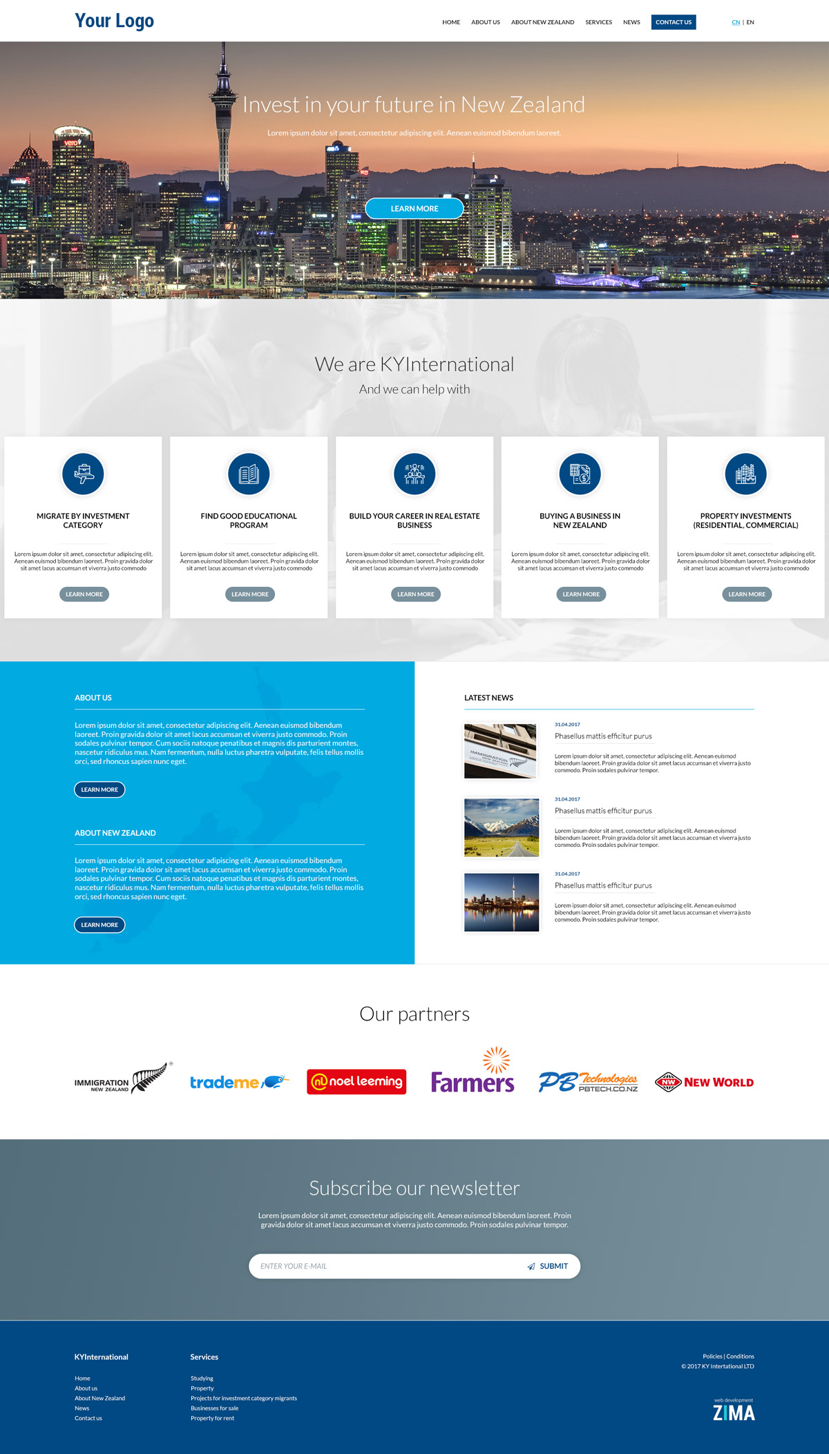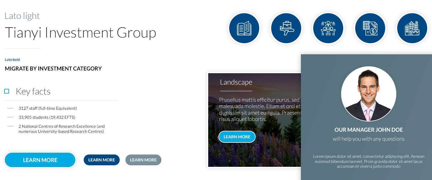 Development of a multi language business site for the international company. Displaying range of opportunities for Chinese investors and migrants in New Zealand